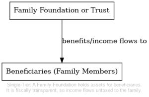 Single-Tier Family Structure: In a simple case, a Family Foundation or trust holds assets for the direct benefit of family members. As a fiscally transparent arrangement, the foundation itself is not taxed; instead, the income flows through to the individual beneficiaries.